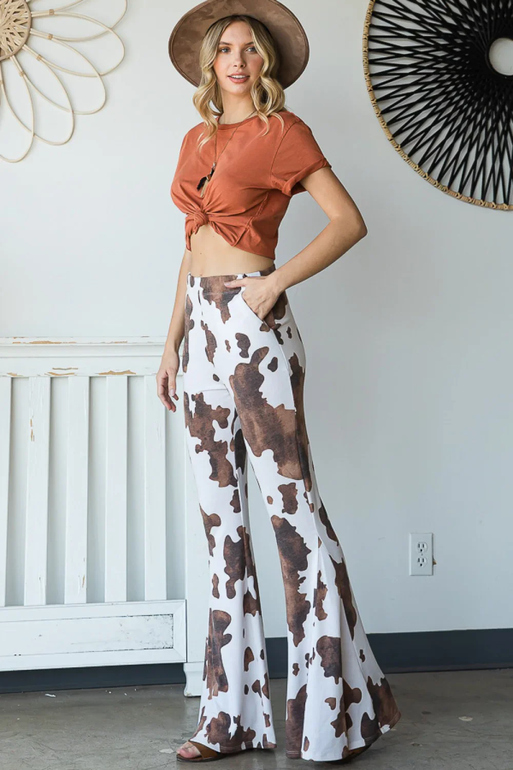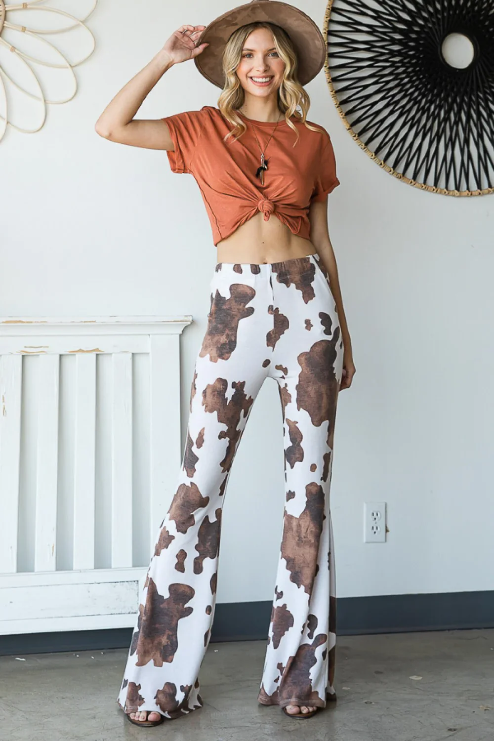 Plus Size Western Cow Print High Waist Flare Leg Pants