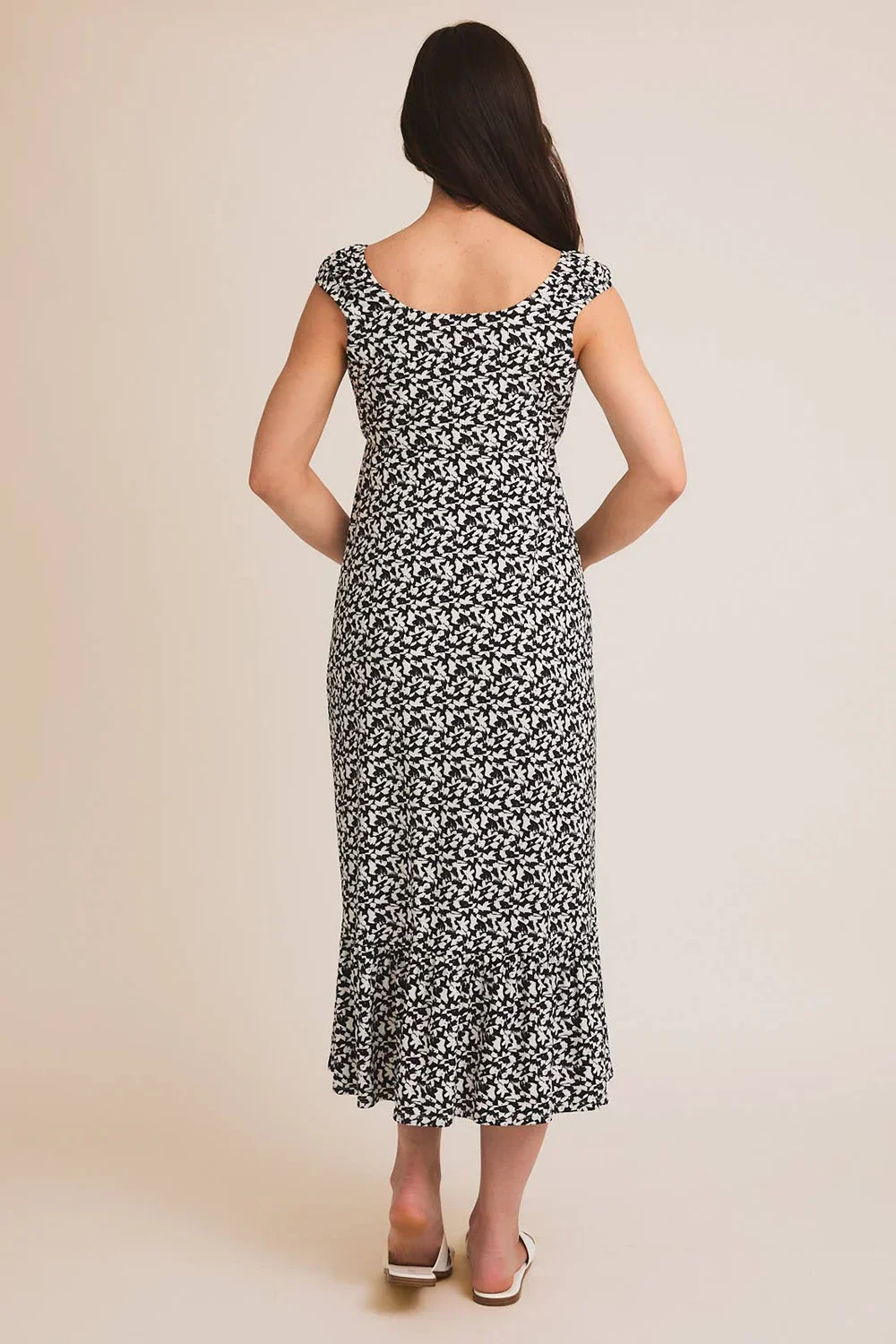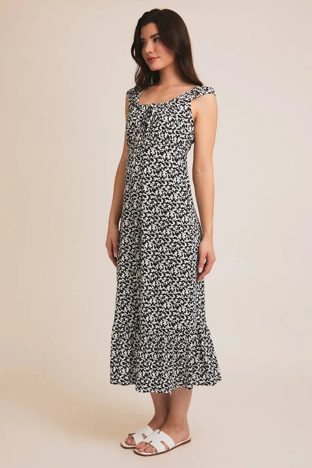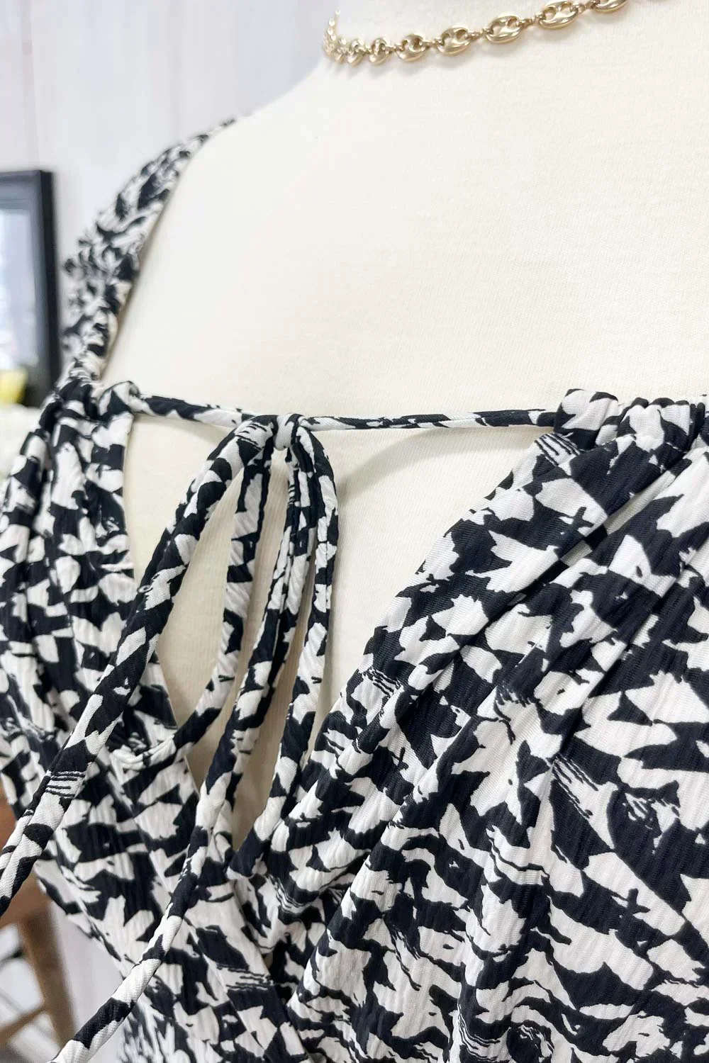 Plus Size Black White Abstract Print Off Shoulder Ruffle Sleeve Maxi Dress
